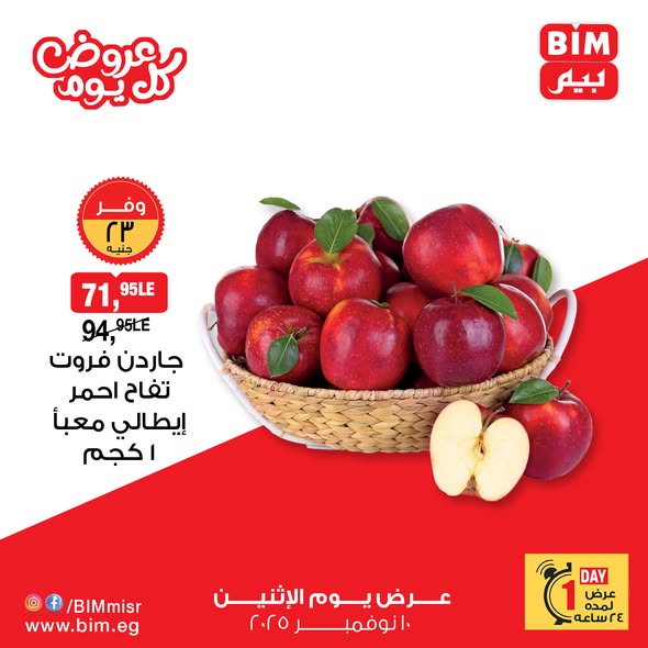 - تفاح احمر إيطالي معبأ 1 كجم بسعر 71.95 جنيه.