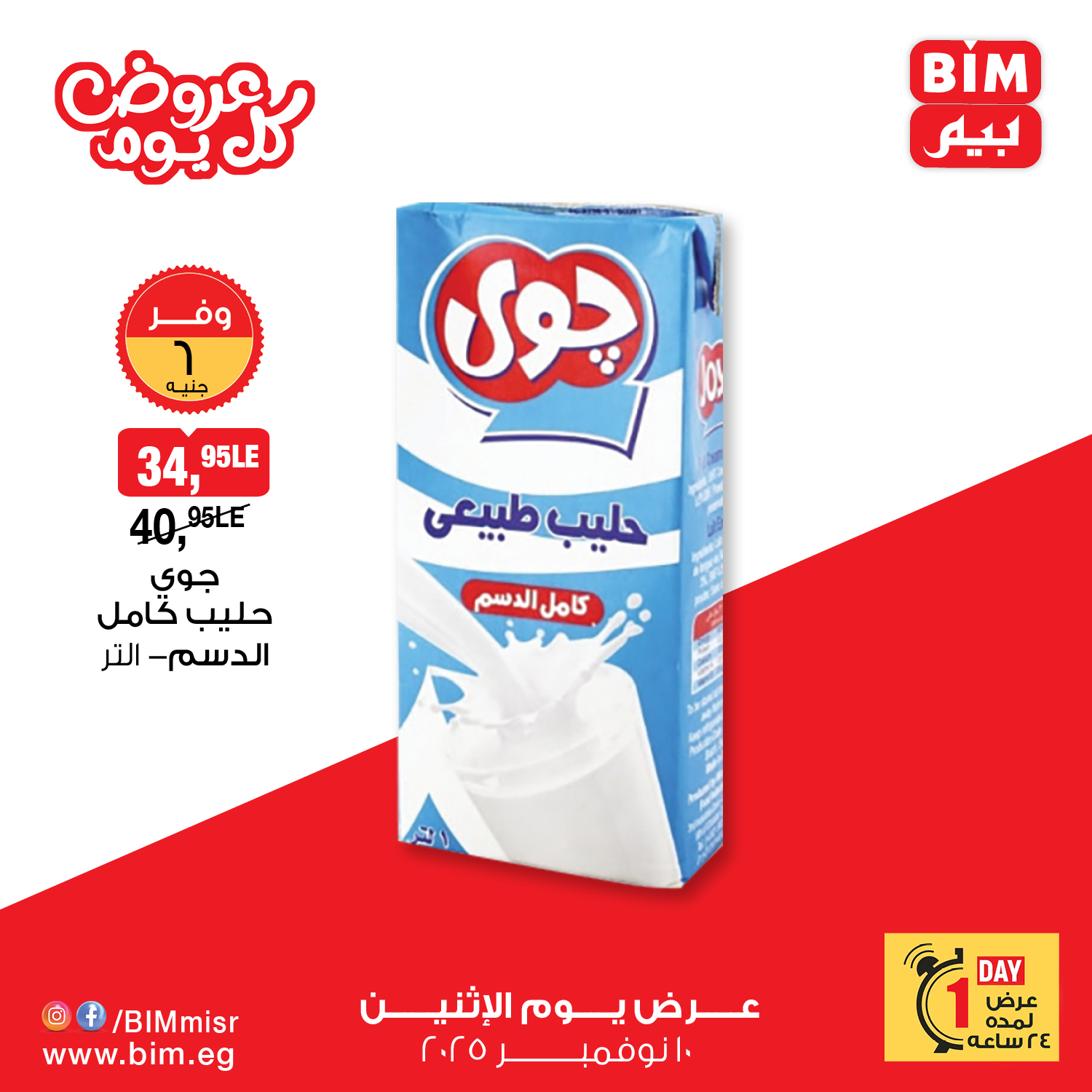- حليب كامل الدسم 1 لتر بسعر 34.95 جنيه.