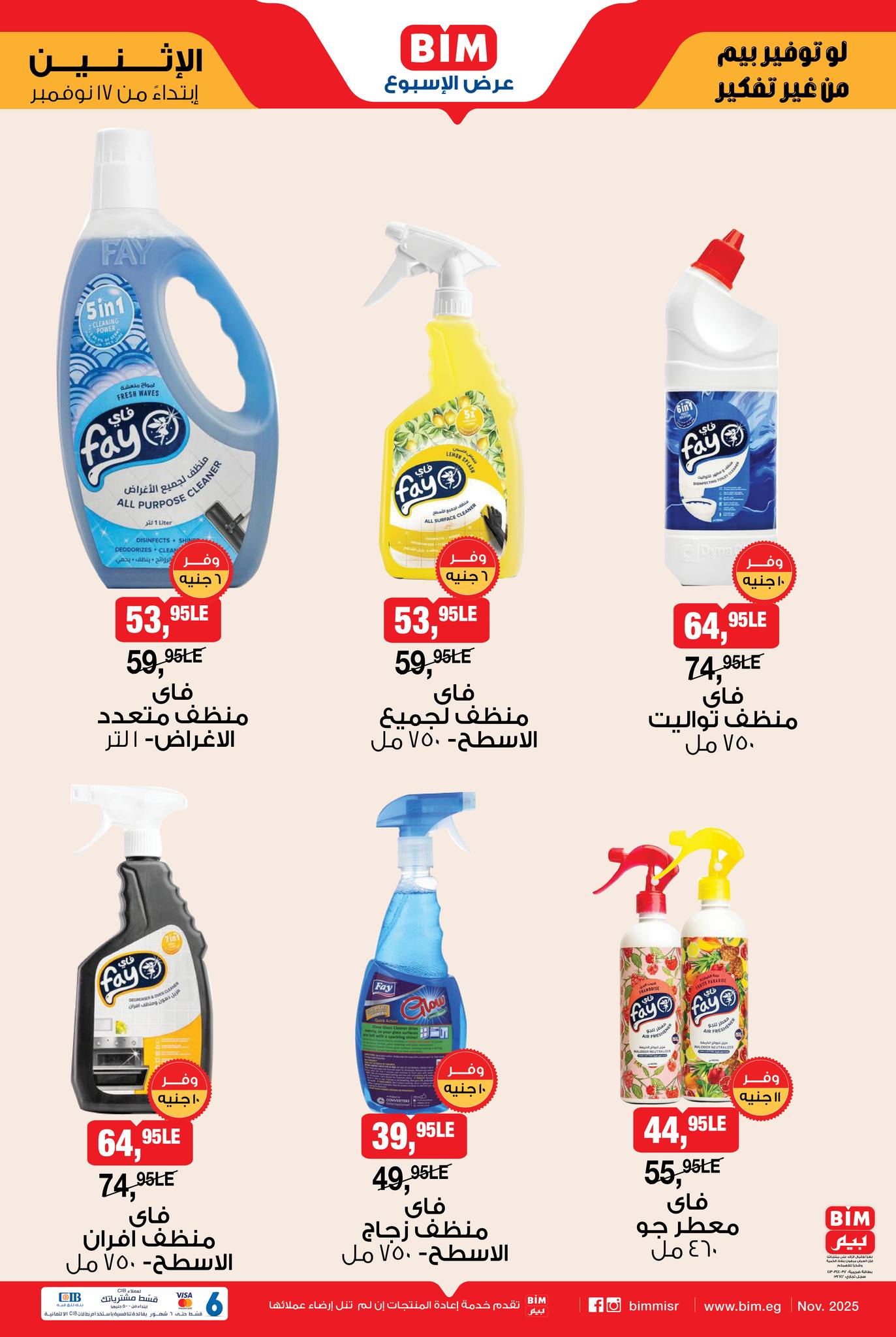 - فاي منظف زجاج الاسطح بسعر 39.95 جنيه.