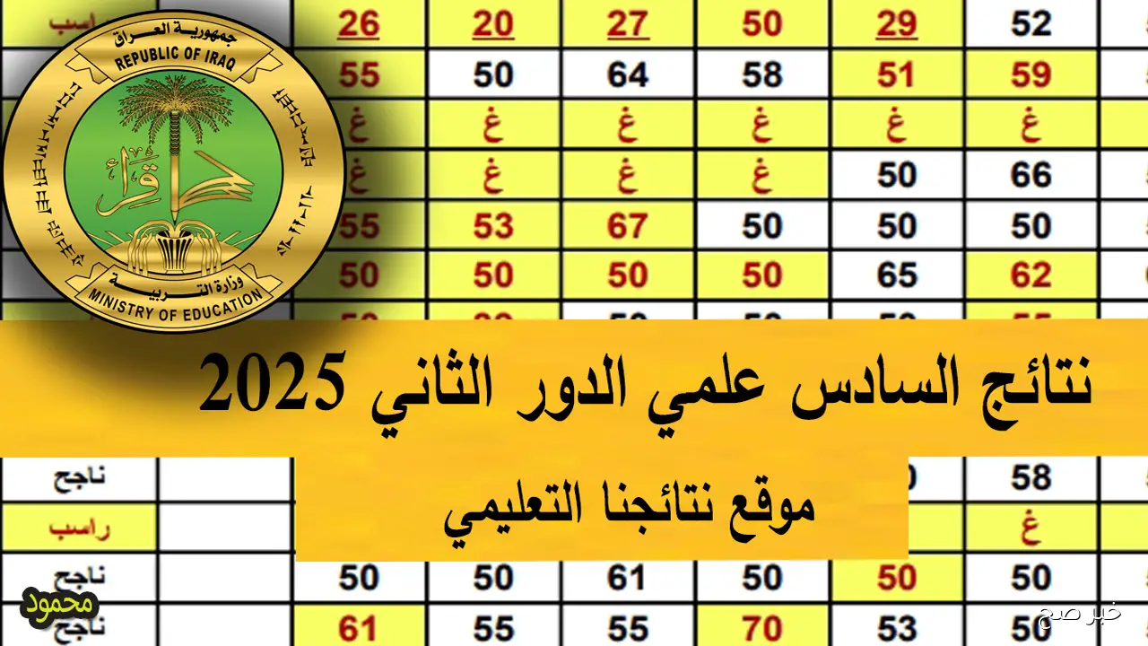 نتائج السادس علمي دور ثاني 2025 pdf نتائج السادس اعدادي نتائجنا ووزارة التربية قريبًا