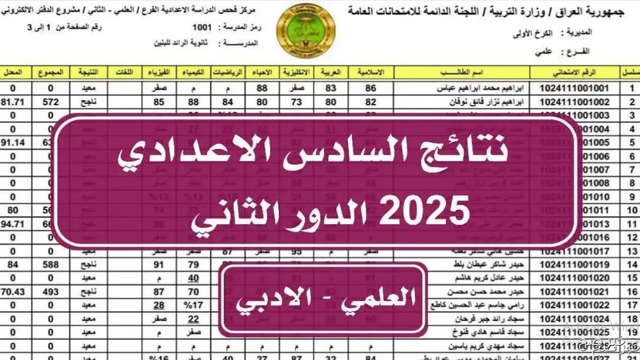 تم الرفع✔✔ نتائج الإمتحانات الوزارية لمرحلة السادس الاعدادي 2025 الدور الثاني عبر نتائجنا
